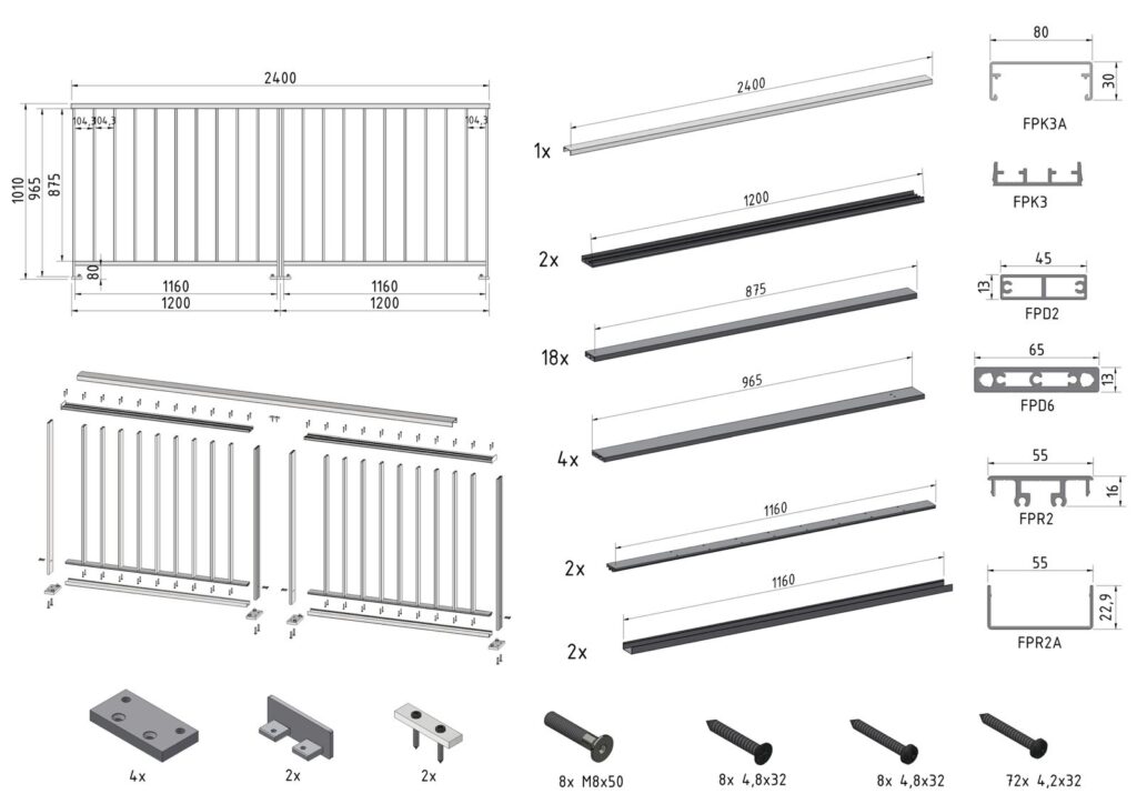 Le SARA BS est un garde-corps prêt à poser de la gamme SARA, conçu pour offrir une solution rapide, fiable et esthétique pour vos projets. Livré en kit de 2,40 m, il est entièrement préparé en atelier : découpé, percé et conditionné, prêt à être installé.