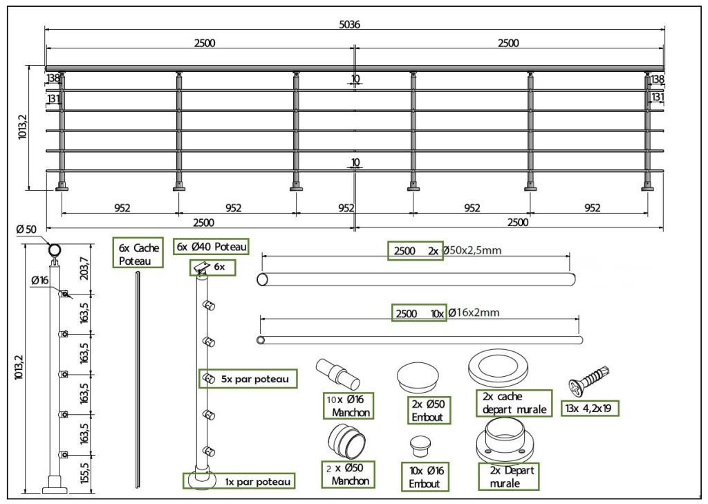Le kit SB 5L composé de 5 lisses est fournit avec l’ensemble de ces accessoires nécessaire a la pose.
